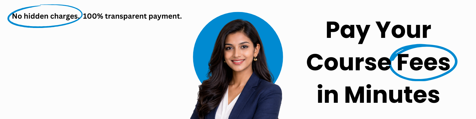 This Fee Payment Portal allows students to securely pay course fees online using multiple payment options. Enter your correct student details, choose your course, and complete the transaction quickly and safely through our trusted payment gateway.